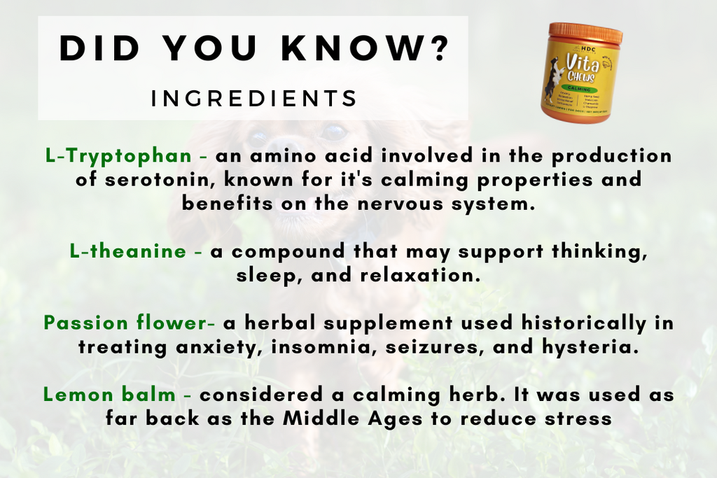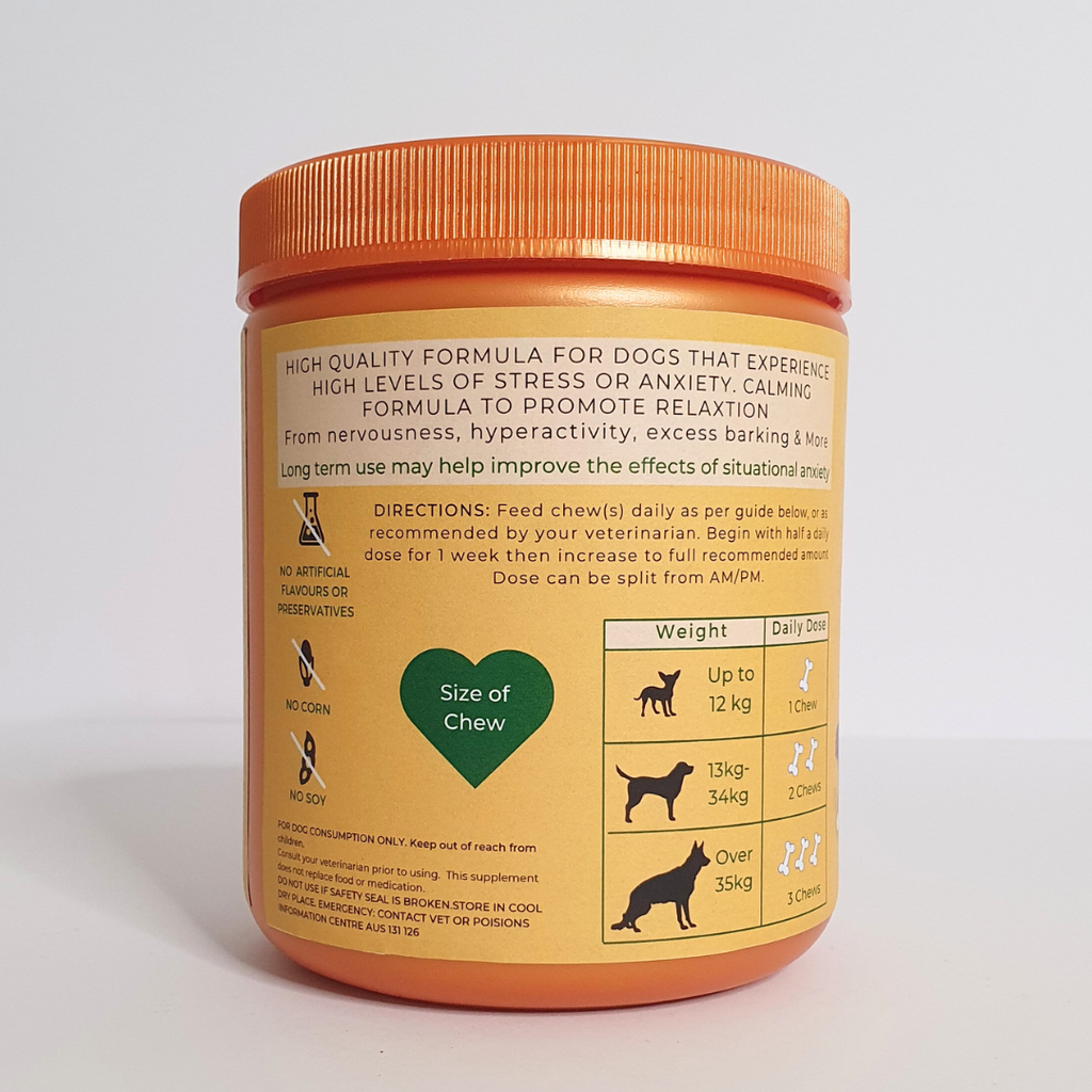 Ingredients like chamomile, lemon balm, and magnesium support the nervous system, helping dogs stay relaxed during stressful situations.